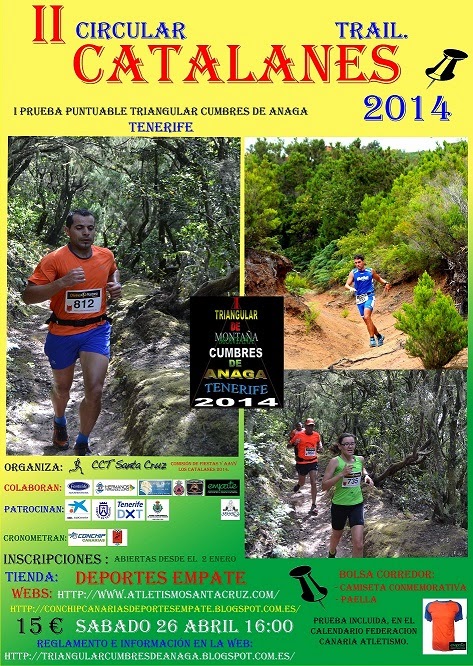 Esta semana las federaciones Canaria y Tinerfeña de atletismo han confirmado al Club Corredores Tenerife Santa Cruz la inclusión de las pruebas Catalanes y Carboneras como Campeonato de Tenerife y Canarias respectivamente. Éstas forman parte de un Triangular que concluirá con la afamada y dura Taganana Trail.